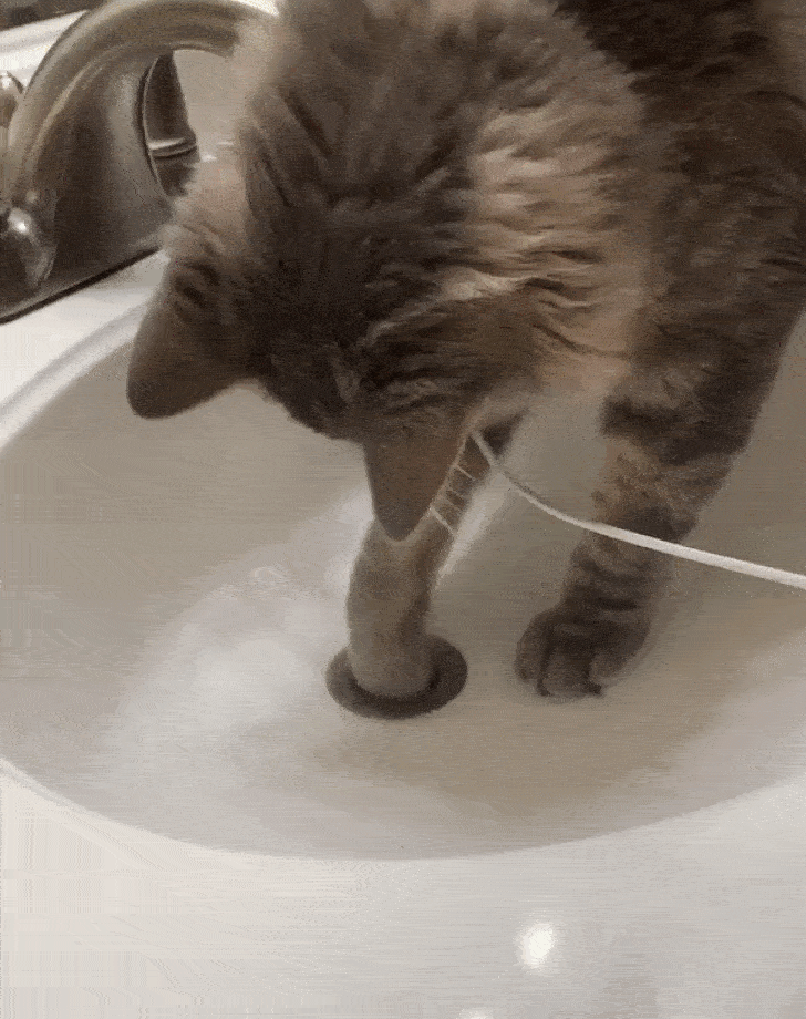 เจ้าของสัตว์เลี้ยงบอกว่า "เดือนก่อน ฉันได้เผลอทำแหวนและคลิปหนีบผม หล่นลงไปในช่องระบายน้ำของอ่างล้างมือ แต่ฉันไม่กล้าเก็บมันขึ้นมา เพราะกลัวว่าจะทำให้มันหล่นลึกลงไปอีก" แล้วดูสิ่งที่เจ้าแมวทำสิ!