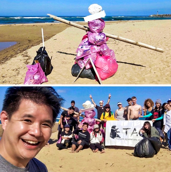 6. "ในการทำความสะอาดที่ไต้หวัน เราได้ทำตุ๊กตาหิมะขึ้นมาจากขยะ"