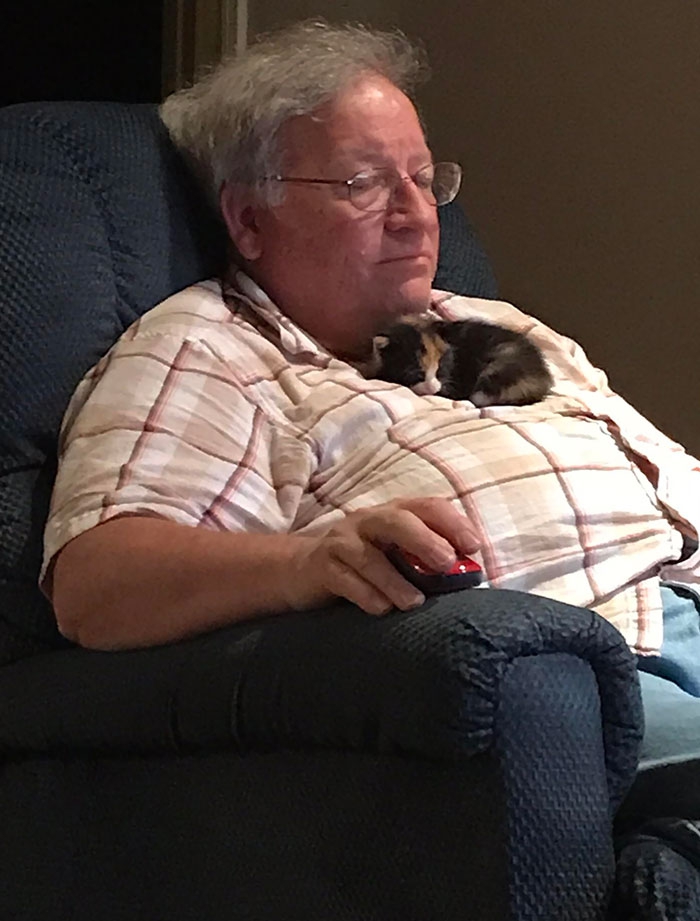 คนในภาพเขาบอกว่า จะเป็นพ่อคนแล้ว เขาจึงฝึกกับแมวน้อยตัวนี้ แต่ก็น่ารักอยู่ดี แฮะๆ