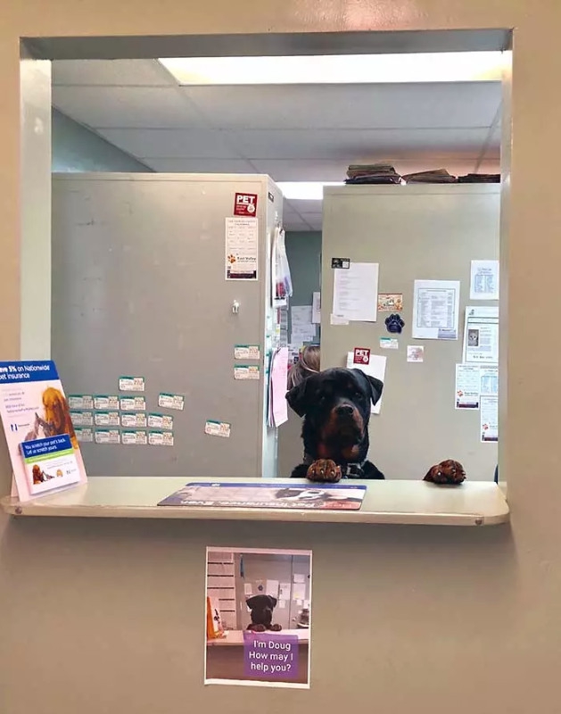 #1 น้องหมาที่มีชื่อว่า Doug ตัวนี้ เป็นเจ้าหน้าที่ต้อนรับในคลีนิกสัตวแพทย์