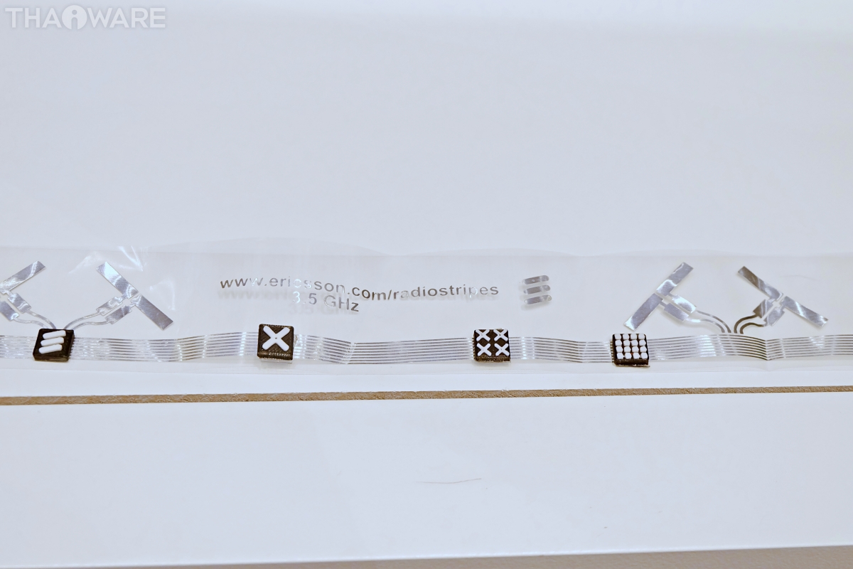 ชูนวัตกรรม Radio Stripes เสาสัญญาณและสถานีฐานรูปแบบใหม่ โดยการออกแบบเครือข่ายที่รองรับการติดตั้งแบบกระจายในวงกว้าง และให้คุณภาพการเชื่อมต่อที่ดีกว่า ติดตั้งง่าย ด้วยชุดเสาอากาศที่มีขนาดเล็กมากจนแทบจะมองไม่เห็น รองรับการรับส่งคลื่นวิทยุความจุสุงในทุกๆ ที่ ให้การเชื่อมต่อ 5G ที่กระจายครอบคลุมทั่วทุกพื้นที่อย่างแท้จริง แก้ปัญหาจุดอับสัญญาณ หรือปัญหาขาดเสถียรภาพการสื่อสารในจุดที่อยู่ห่างไกลเสาสัญญาณ เป็นโซลูชั่นการติดตั้งที่เหมาะสมสำหรับพื้นที่กลางแจ้งและพื้นที่ภายในอาคารที่มีความท้าทาย เช่นย่านใจกลางเมืองที่มีผู้คนหนาแน่น ศูนย์การค้า อาคารสำนักงาน สนามกีฬา สถานีรถไฟ โรงงาน และคลังสินค้า อธิบายอย่างง่ายๆ ก็คือ อุปกรณ์ดังกล่าวเป็นสถานีฐาน (Base station หรือ Cell Site) ที่อยู่ในรูปแบบของเทปที่ยืดหยุ่น สามารถ "ปรับขนาดได้ตามต้องการ" โดยใช้กรรไกรตัด