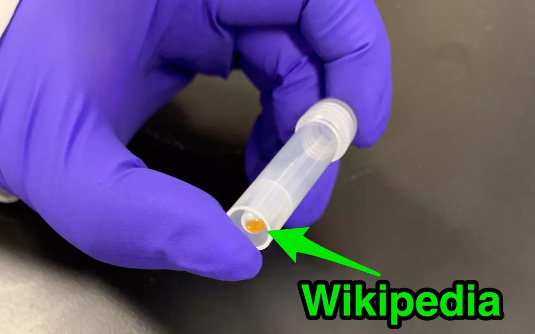 บริษัทสตาร์ทอัพ Catalog ประกาศว่า พวกเขาได้จัดการบีบอัดข้อมูลสารานุกรม Wikipedia เวอร์ชันภาษาอังกฤษขนาด 16 GB ผ่านเครื่อเขียนข้อมูลลงใน DNA ได้สำเร็จเป็นที่เรียบร้อย ซึ่งเขาใช้ Prefabricated synthetic DNA strands ซึ่งมีขนาดสั้นกว่า DNA มนุษย์ และ เมื่อมารวมกันเยอะๆ มันสามารถเก็บข้อมูลได้ในปริมาณมากขึ้น