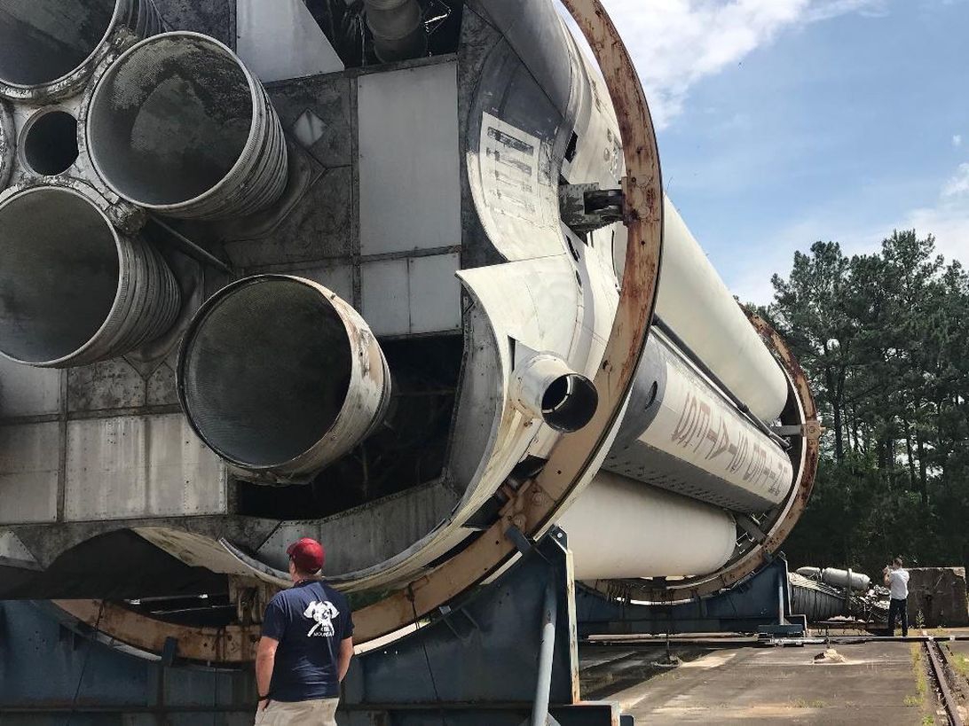 รูปโมเดลส่วนฐานเครื่องยนต์ของจรวด Saturn ที่ถูกวางไว้มาหลายปี