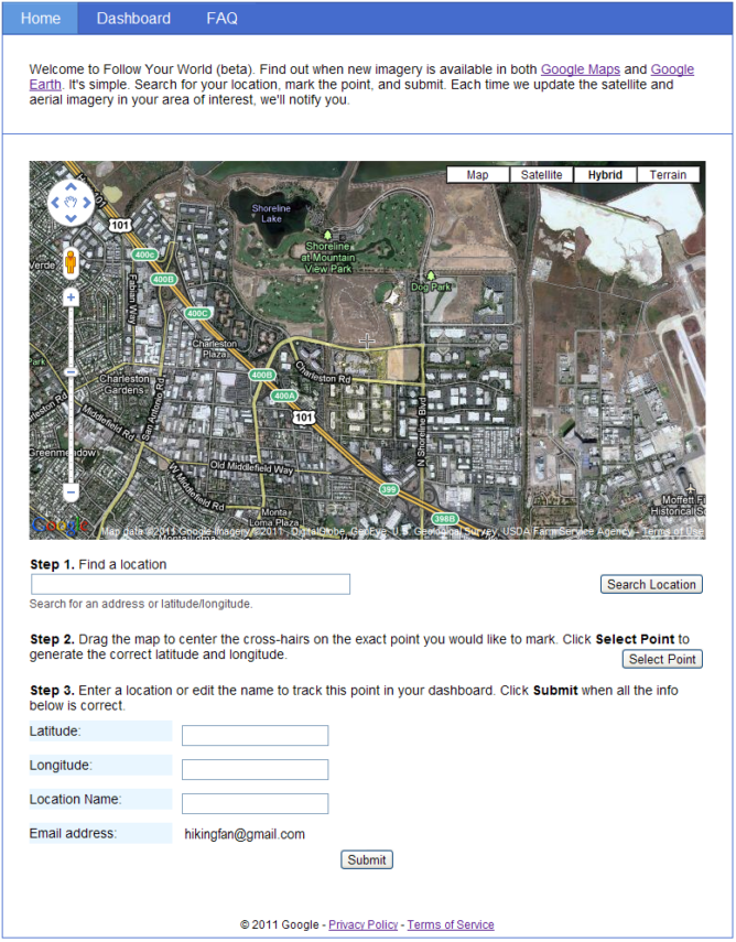 Follow Your World เปิดให้บริการตั้งแต่ 8 ปีที่แล้ว มันมีความสามารถในการติดตามการอัปเดตภาพแผนที่จากดาวเทียม โดยผู้ใช้สามารถปักหมุดตำแหน่งบนแผนที่ที่ต้องการ จากนั้น Google จะส่งแจ้งเตือนมาหาคุณ เมื่อภาพในตำแหน่งดังกล่าวมีความเปลี่ยนแปลง ซึ่งบริการดังกล่าวจะใช้งานได้ถึงแค่วันที่ 30 กันยายน 2562 ที่จะถึงนี้เท่านั้น