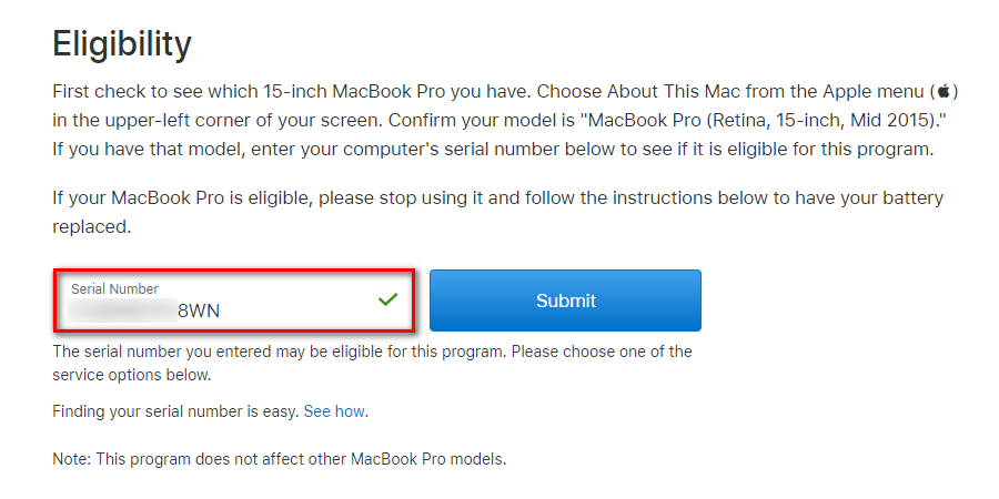 ทางผู้เขียนก็ใช้ MacBook Pro Mid 2015 เป็นรุ่นที่มีปัญหาตามข่าว พอเช็คดูขึ้นว่ามีสิทธิ์เข้ารับการเปลี่ยนแบตฯ ผู้เขียนก็เลยนำเครื่องไปที่ศูนย์ Apple และพนักงานก็ได้ทำการเปลี่ยนแบตฯ ใหม่ให้ฟรี เป็นที่เรียบร้อย!