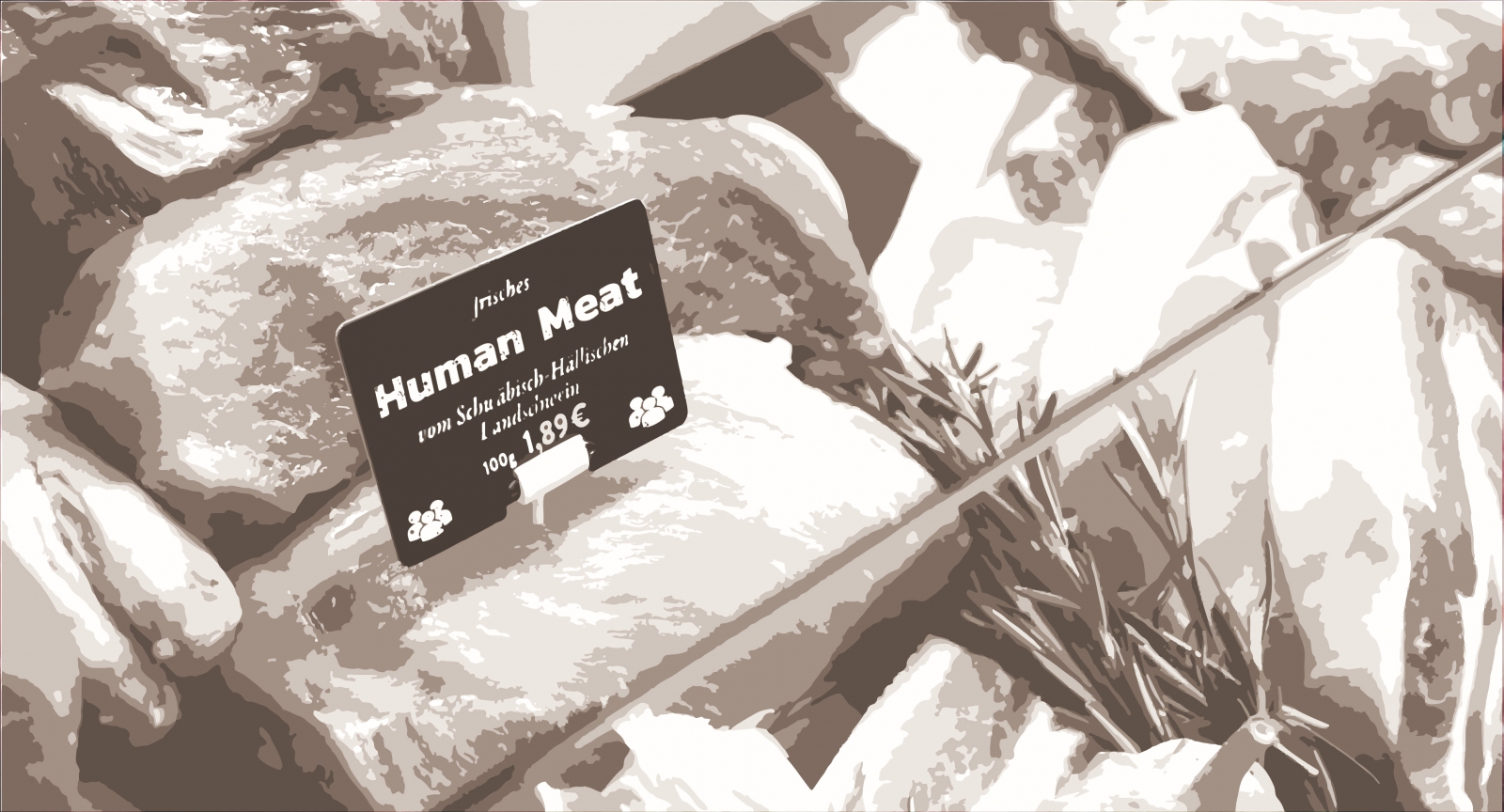 NOWHERENEARสามัญสำนึกคนทั่วไปนั้นรู้กันอยู่แล้วว่ามนุษย์ไม่ใช่อาหารและไม่ควรกิน ไม่ว่าจะมีชีวิตอยู่หรือไม่ก็ตาม มันเป็นสิ่งที่ผิดทางด้านจริยธรรมและสังคมไม่อาจจะยอมรับได้