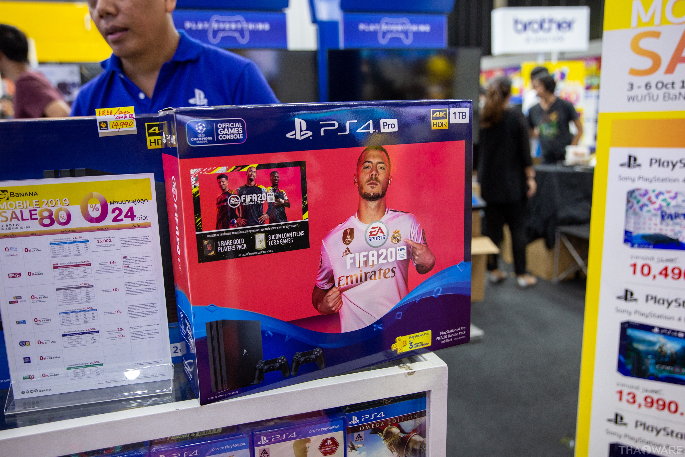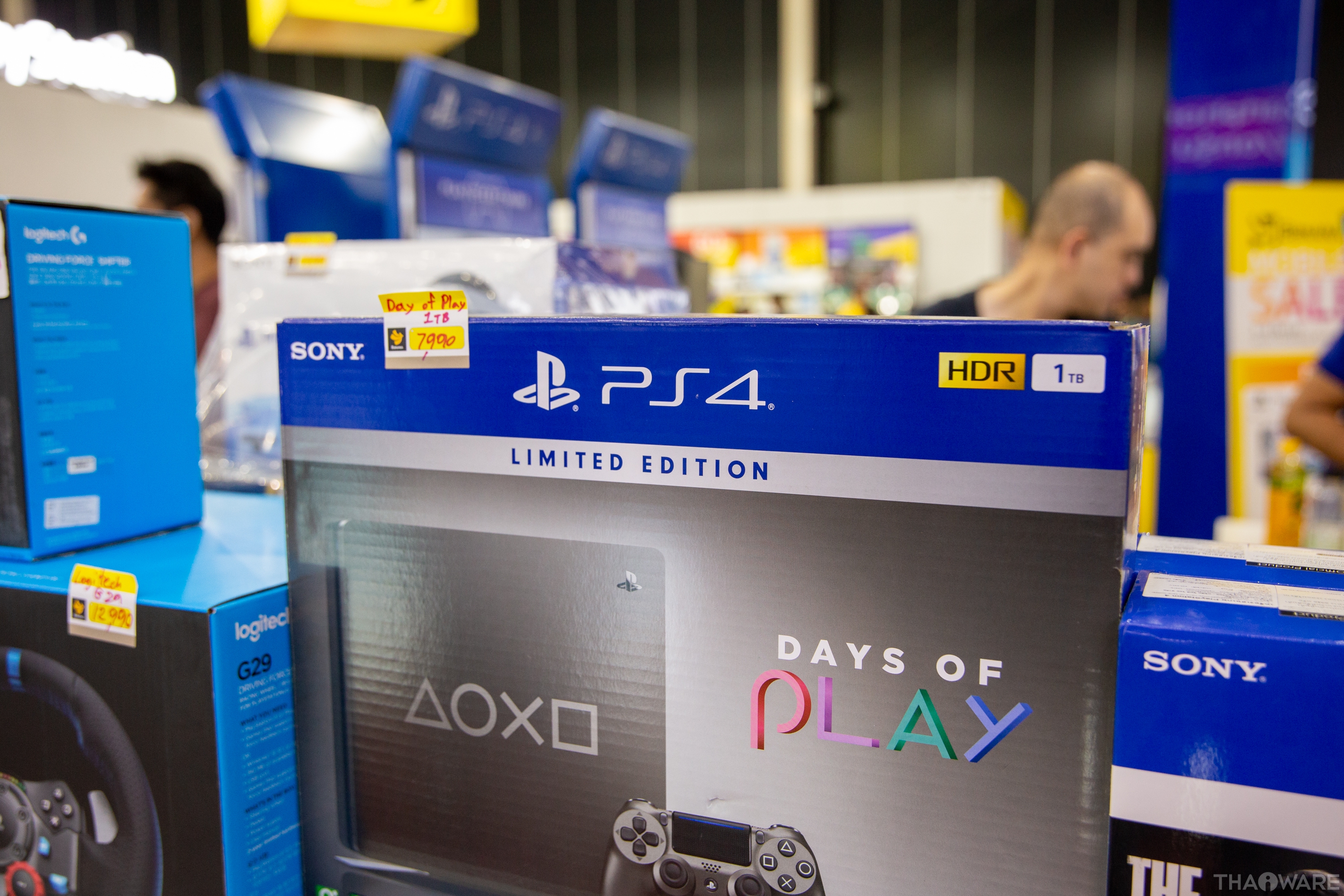 ในบูธนี้ก็จะมีโปรโมชันเครื่อง PS4 ที่แถมจอย Dualshock PS4 เพิ่มอีกหนึ่งตัว เล่นกันที่บ้านสองคน ได้สบายๆ เลย ที่เห็นเหมือนจะมี PS4 1TB ราคาถูกสุดเริ่มต้นที่ 7,990 น่าจับจองมากๆ