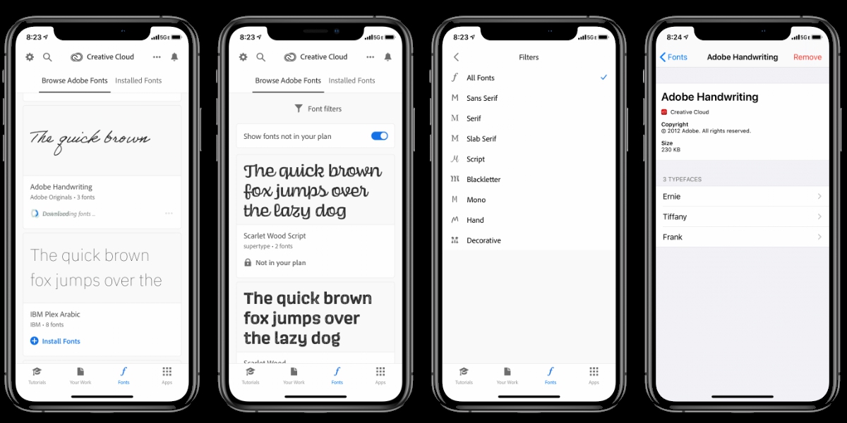 l3uchหลายครั้งที่เรารู้สึกเบื่อและอยากที่จะเปลี่ยนรูปแบบของฟอนต์ที่ติดมากับเครื่อง แต่สำหรับใครที่ใช้ Apple ที่เป็นระบบปฏิบัติการของ iOS นั้น การเปลี่ยนฟอนต์ต่างๆ ในเครื่องค่อนข้างที่จะมีขั้นตอนที่ยุ่งยากอยู่พอสมควร ซึ่งในตอนนี้ทาง Adobe ก็ได้ช่วยแก้ปัญหานี้โดยการเพิ่มฟอนต์ในแอปพลิเคชัน Adobe Creative Cloud ของ iOS ให้ผู้ใช้ทั่วไปได้ดาวน์โหลดมาใช้ฟรีถึง 1,300 ฟอนต์เพียงแค่คุณดาวน์โหลดแอปพลิเคชันของ Creative Cloud จากแอปสโตร์มาติดเครื่องไว้เท่านั้น และสำหรับผู้ที่สมัครใช้งาน Creative Cloud แบบรายเดือนนั้นสามารถดาวน์โหลดฟอนต์ได้ถึง 17,000 ฟอนต์เลยทีเดียว!