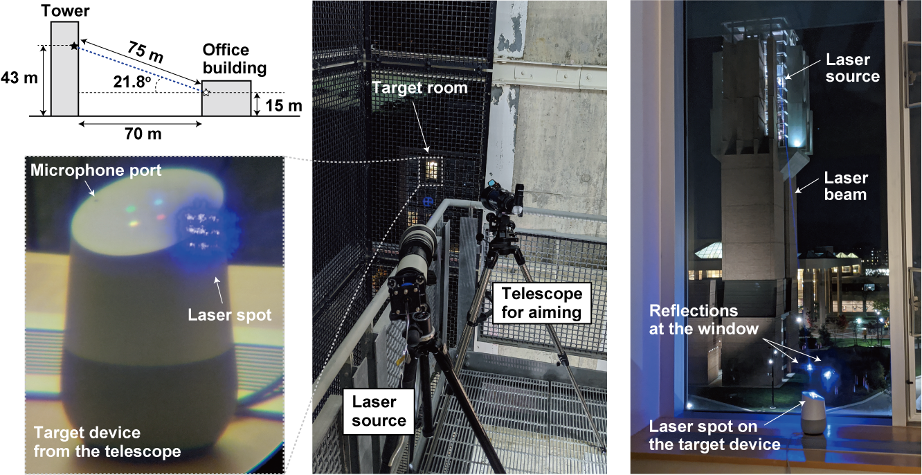 ทีมนักวิจัยได้แปลงคำสั่งให้อยู่ในรูปแบบของแสงเลเซอร์ แล้วยิงคลื่นแสงดังกล่าวไปยังไมโครโฟนของอุปกรณ์ที่รองรับคำสั่งเสียงจากระยะไกล ซึ่งจากการทดสอบที่ระยะห่าง 110 เมตร ก็ยังสามารถทำได้อย่างสบายๆ