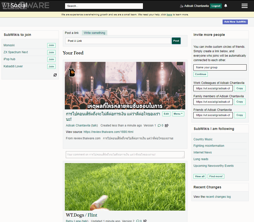 เท่าที่เราเข้าไปลองเล่นคร่าวๆ แนวคิดที่ใช้ในการจัดการหน้า Feed ดูน่าสนใจทีเดียว เต็มไปด้วยเนื้อหาที่ตรงกับความสนใจของเราจริงๆ ใครที่สนใจลองเข้าไปสมัครใช้งานได้ที่ https://wt.social/ ขณะนี้มีคนลงทะเบียนเข้าร่วมแล้วกว่า 200,000 คน ทั้งนี้ เนื่องจากยังอยู่ในช่วงทดสอบ เราอาจจะต้องรอคิวการอนุมัติก่อนนะ หากอยากลัดคิวสามารถใช้วิธี Donate (บริจาคเงิน) ได้