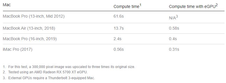 แม้ว่าการ Upscaled จะไม่สมบูรณ์แบบ แต่ก็ดีกว่าการขยายรูปภาพแบบวิธีปกติอยู่หลายเท่า แถม Pixelmator ยังใช้เวลาในการประมวลผลน้อยกว่าซอฟต์แวร์ตัวอื่นๆ ที่มีความสามารถเหมือนกันด้วย การ Upscaled ภาพขนาด 300,000 พิกเซล เป็น 900,000 พิกเซล บน MacBook Pro 16 นิ้ว 2019 ใช้เวลาแค่เพียง 2.4 วินาที เท่านั้น และหากใช้ eGPU ด้วยจะเหลือแค่ 0.4 วินาที เท่านั้น ถือว่าทำงานได้เร็วมากเลยล่ะ