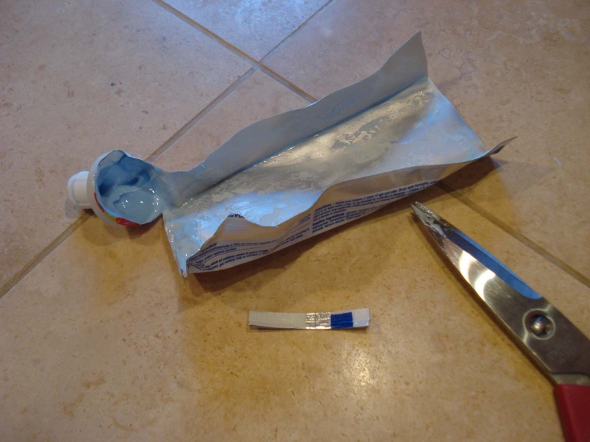 จะเห็นได้ว่าภายในหลอดยาสีฟันจะมีส่วนผสมของอะลูมิเนียม (สีเงิน)