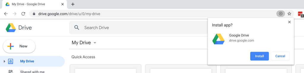 Google ได้อัปเดตบริการ Maps และ Photos ให้ทำงานแบบ PWA ได้มาสักพักแล้ว ล่าสุด Google Drive ก็ได้รับการปรับปรุงให้ทำงานแบบ PWA ได้แล้วเช่นกัน โดยผู้ใช้สามารถคลิกที่ไอคอน (+) ที่อยู่ตรงช่อง URL เพื่อติดตั้งได้เลย
