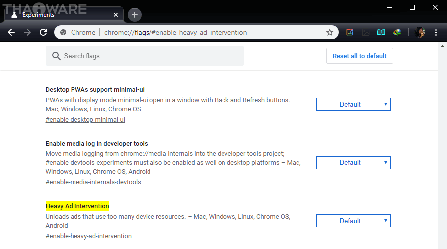 สามารถเปิดใช้งานคุณสมบัตินี้ได้ที่ chrome://flags/#enable-heavy-ad-intervention