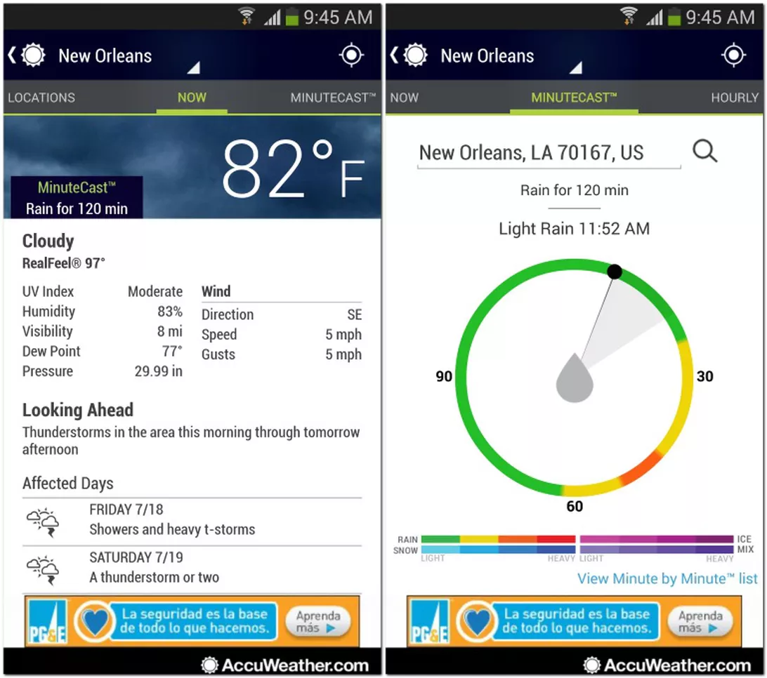 AccuWeather หนึ่งในแอปพลิเคชันรายงานสภาพอากาศที่ได้รับความนิยม สามารถบอกตำแหน่งได้ว่าคุณอยู่ที่ไหน ขณะเดียวกันก็ส่งข้อมูลเหล่านี้ให้บริษัทโฆษณาเช่นกัน ค้นพบโดย Strafach ในปี 2017