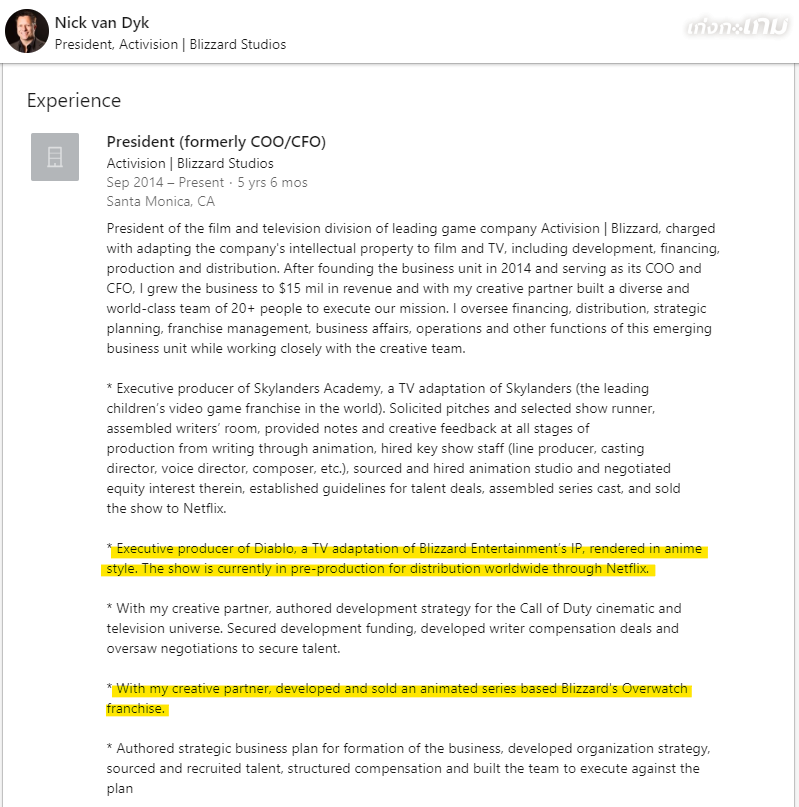 เรื่องดังกล่าวนั้นถูกค้นพบเมื่อประธานบริษัทร่วมของ Acitivision Blizzard นาม Nic van Dyk ที่เคยทำงานเป็นโปรดิวเซอร์ให้กับซีรี่ส์แอนิเมชันของ Netflix เรื่อง Skylanders Academy นั้น ทำการเปลี่ยน Description หรือรายละเอียดในหน้าโปรไฟล์ของตนเองในเว็บไซต์ LinkedIn ว่า "Diablo กำลังจะมีแอนิเมชันที่ใช้เค้าโครงเรื่องจากในเกม "ในรูปแบบอนิเมะ" (Rendered in Anime Style) ซึ่งในขณะนี้กำลังอยู่ในระหว่างการเตรียมการจัดทำ และจะเปิดให้รับชมทั่วโลกผ่านทาง Netflix (ซึ่งถ้าอยู่ในขั้น "เตรียมการ" จริงๆ ล่ะก็ ต้องรอไปอีกสักพักใหญ่ๆ เลยล่ะ กว่าจะได้ชมกัน)