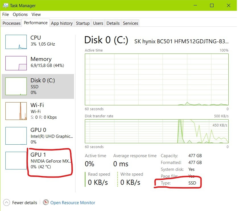 - Task manager เพิ่มข้อมูลที่ Task Magager สามารถบอกกับเราได้เช่นรายงานอุณหภูมิของ GPU หรือแสดงประเภทของดิสก์ที่คุณมี (HDD หรือ SSD)