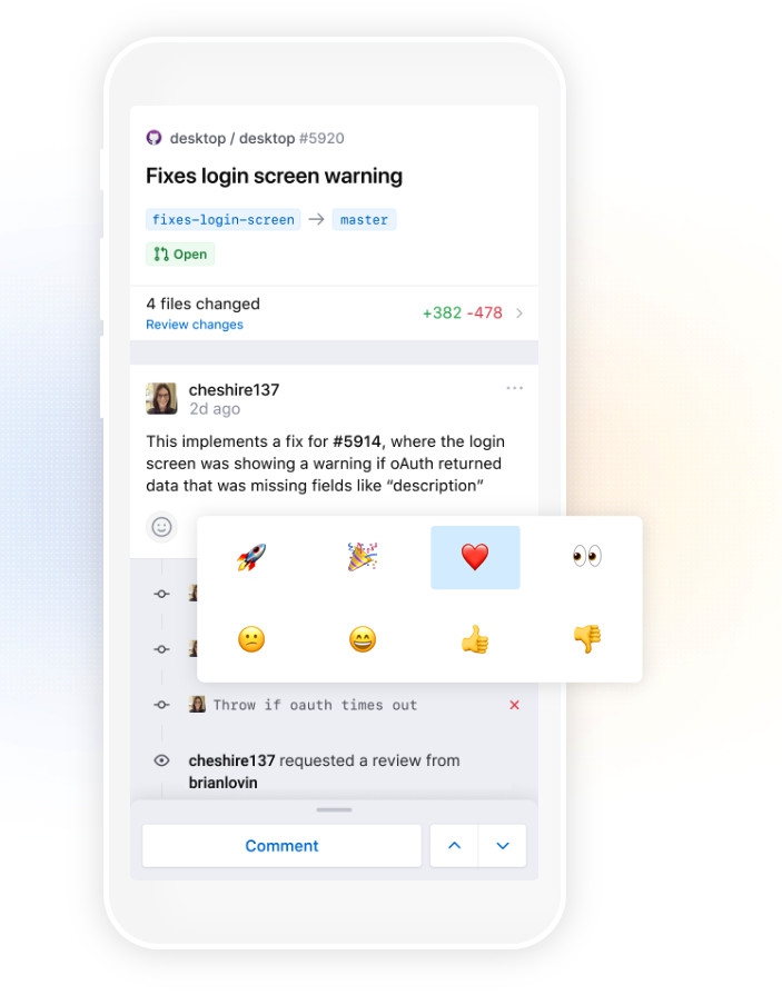 ซึ่งภายในแอปพลิเคชัน GitHub for mobile นี้จะมีความ แตกต่างจาก GitHub บน PC และไม่สามารถใช้แทนกันได้ เพราะแอปพลิเคชันนี้ ทำได้เพียงการจัดการหรือจัดระเบียบงานเท่านั้น โดยผู้ใช้จะสามารถค้นหาไฟล์และโค้ดที่ต้องการ, ตรวจเช็คงานที่ได้รับมอบหมาย, จัดระเบียบงาน, รีวิวฟีดแบคการคอมเมนท์งาน, พูดคุยกับเพื่อนร่วมทีม หรือรีวิวโค้ดบางส่วนได้จากภายในแอปพลิเคชันนี้โดยที่ไม่จำเป็นต้องรันโค้ดบนคอมพิวเตอร์แต่อย่างใด