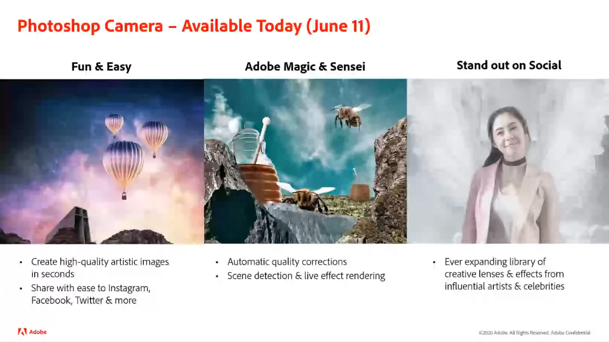 Adobe ได้เพิ่มความมหัศจรรย์ให้กับ Photoshop Camera ด้วยการเพิ่มฟีเจอร์ของ Photoshop พร้อมการประมวลผลอย่างชาญฉลาดด้วย AI ช่วยให้ผู้ใช้จับโฟกัสของภาพได้ง่ายยิ่งขึ้น และภาพได้รับการปรับแต่งอย่างชาญฉลาดมากขึ้น เท่ขึ้น ทำให้ภาพ #NoFilter เป็น #OnFilter สุดคูลได้อย่างง่ายดาย