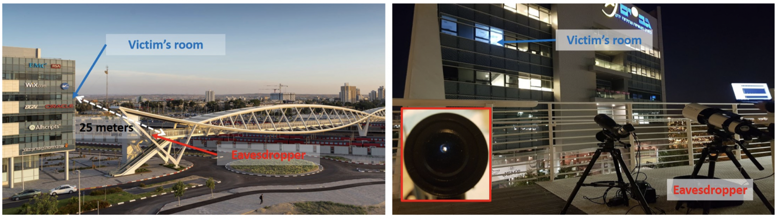จากการสาธิต นักวิจัยได้ตั้งกล้องส่องทางไกลห่างจากหลอดไฟที่ระยะ 80 ฟุต และใช้ Electro-optical sensor รุ่น PDA100A2 ของ Thorlabs วางตรงช่องมองของกล้องส่องทางไกล ส่องไปยังหลอดไฟแบบ LED ขนาด 12 วัตต์ ทั้งนี้นักวิจัยระบุว่าหากใช้อุปกรณ์ที่มีประสิทธิภาพสูงกว่านี้ ระยะโจมตีก็จะไกลขึ้นกว่านี้ได้อีก