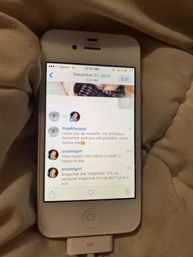ทาง Elgort ก็ได้ตอบรับและได้ Snapchat ส่วนตัวกัน ซึ่งเธอระบุว่า Elgort ได้ขอรูปภาพเปลือยของเธอ และยังขอมีเพศสัมพันธ์แบบสามคน (Threesome) กับเธอและหนึ่งในนักเต้นเพื่อนของเธอ ซึ่งเธอก็ได้โพสต์รูปว่าเธอได้เจอกับ Elgort จริงๆ เอาไว้ด้วย
