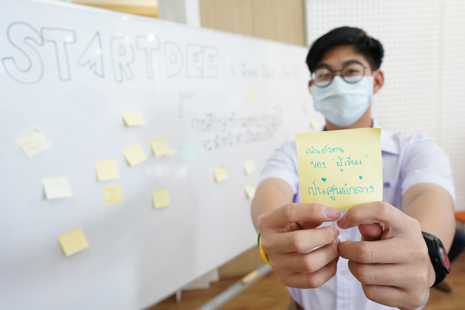 ภาพกิจกรรมในงานที่ เปิดโอกาสให้นักเรียนเขียนความรู้สึก และความคาดหวังที่จะให้ระบบการศึกษาของไทยเปลี่ยนแปลงไปอย่างไร
