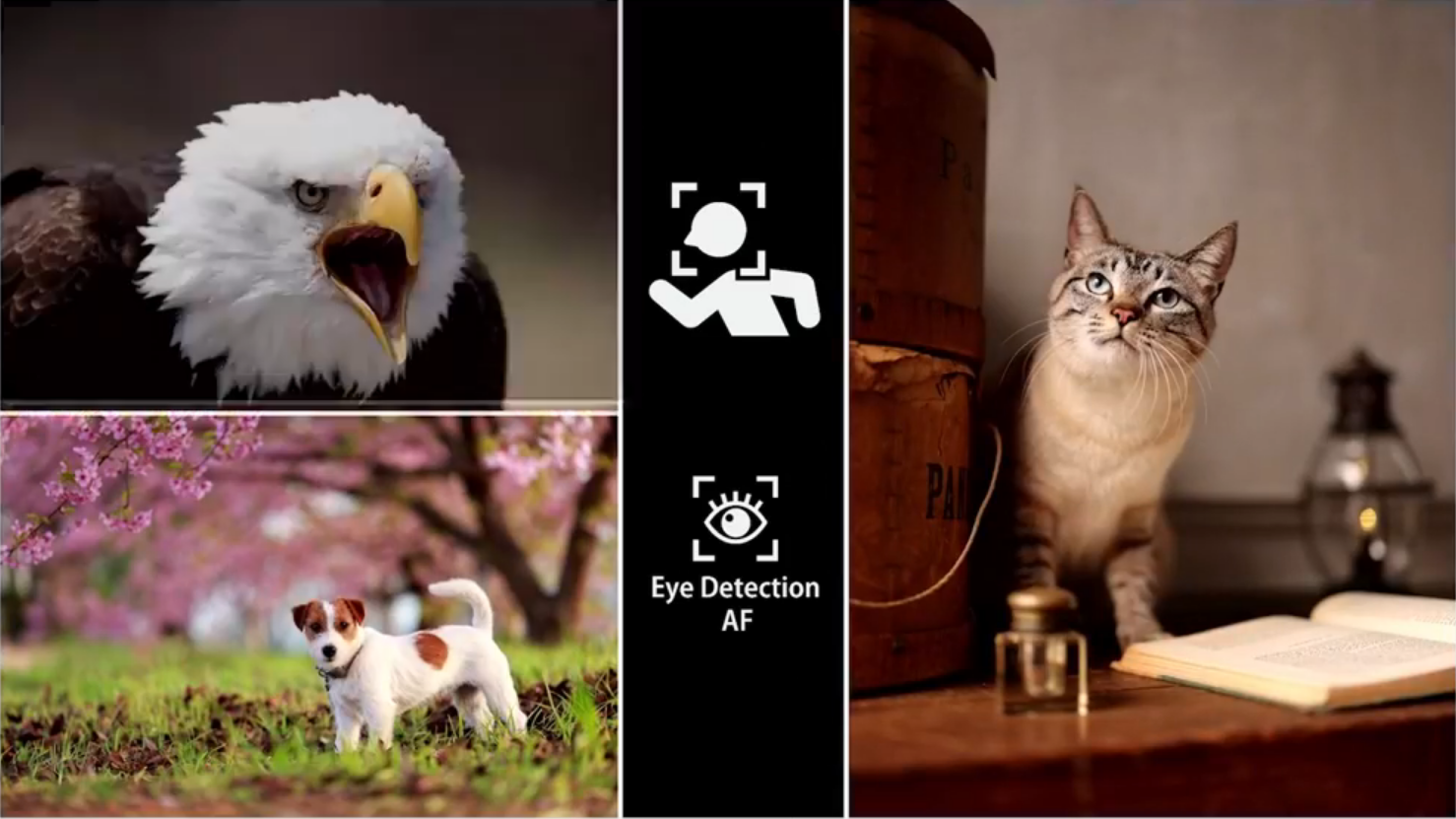 - ระบบโฟกัสติดตามดวงตา ใบหน้า และร่างกายของสัตว์อย่างแมว สุนัข รวมถึงนก