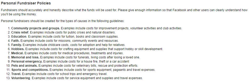 ภาพจาก : https://www.facebook.com/policies/personal_fundraiser_categories