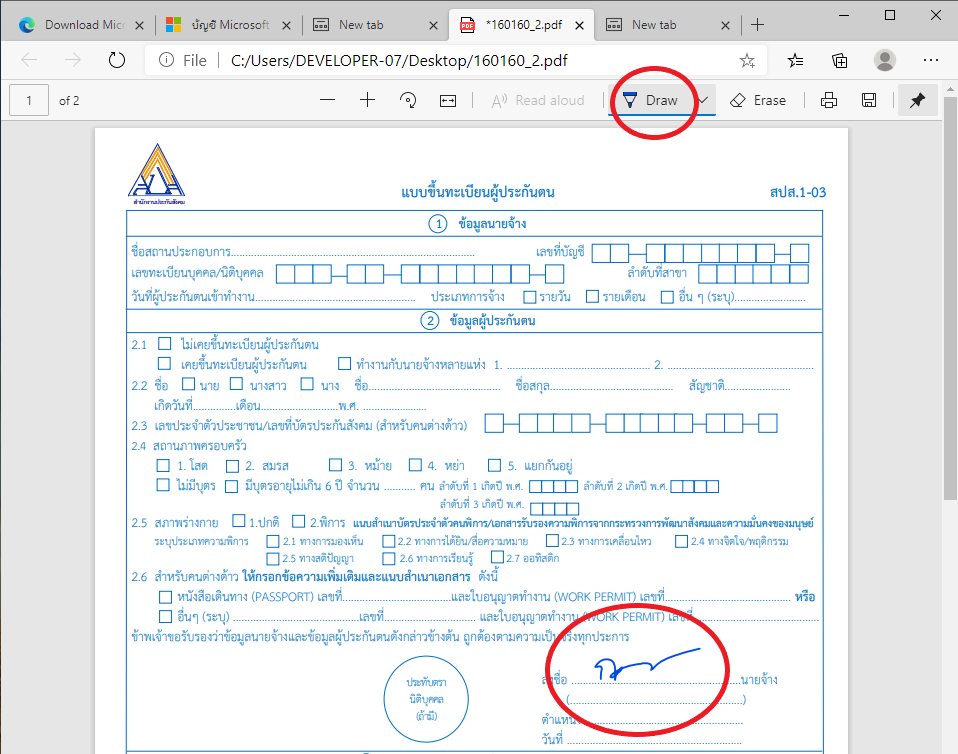 และคุณอาจยังไม่ทราบว่า Microsoft Edge สามารถเปิดไฟล์ PDF พร้อมกับขีดเขียนบนไฟล์เอกสารได้เลย ซึ่งเป็นความสามารถที่เบราว์เซอร์อื่นไม่มี นอกจากนี้เมื่อเซฟทับไฟล์เดิมไปแล้ว ยังสามารถแก้ไขได้ เว้นแต่จะส่งไฟล์ไปให้คนอื่น ซึ่งคนอื่นจะไม่สามารถแก้ไขหรือลบได้