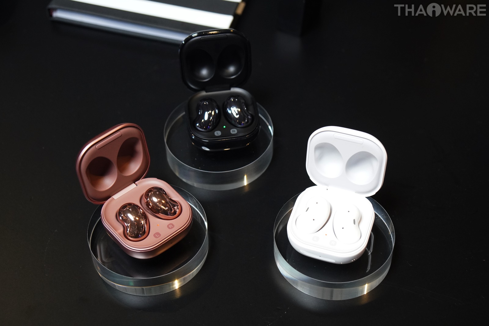 สำหรับ Galaxy Buds Live หูฟังไร้สายรุ่นใหม่ในรูปทรงสุดไอคอนิกที่ออกแบบให้โค้งรับสรีระ มาพร้อมที่สุดแห่งคุณภาพเสียงจาก AKG มอบพลังเสียงนุ่มลึกมีมิติด้วยลำโพงขนาด 12 มม.และ Bass Duct พร้อมทั้งลำโพง 3 ตัว และเทคโนโลยี Voice Pick-up Unit (VPU) ช่วยให้การสนทนาคมชัดราวกับอยู่ในที่เดียวกัน อีกทั้งยังเป็นหูฟังแบบเปิดที่มีฟังก์ชั่น Active Noise Cancellation (ANC) ช่วยตัดเสียงรบกวนภายนอก แต่ยังคงไว้ให้ผู้ใส่ได้รับรู้ถึงเหตุการณ์สำคัญที่เกิดขึ้นรอบด้าน