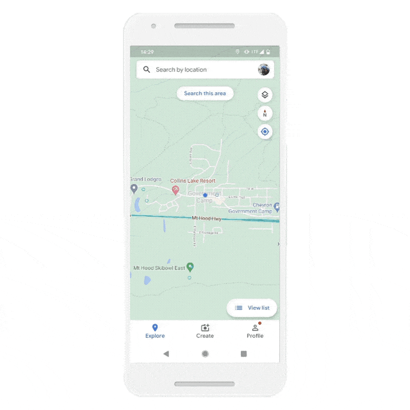 หรือหากต้องการดูภาพ Android Street View ที่ผู้ใช้คนอื่นๆ กดบันทึกและเชื่อมต่อไว้ ก็สามารถไปที่แอปพลิเคชัน Google Maps และกดเลือกการแสดงผลแบบ Street View ที่เมนูมุมมองเพิ่มเติม (สี่เหลี่ยมซ้อนกันสองอัน) และสามารถลากดูตามเส้นทางที่ผู้ใช้คนอื่นๆ บันทึกเอาไว้ได้ตามเส้นประสีฟ้า