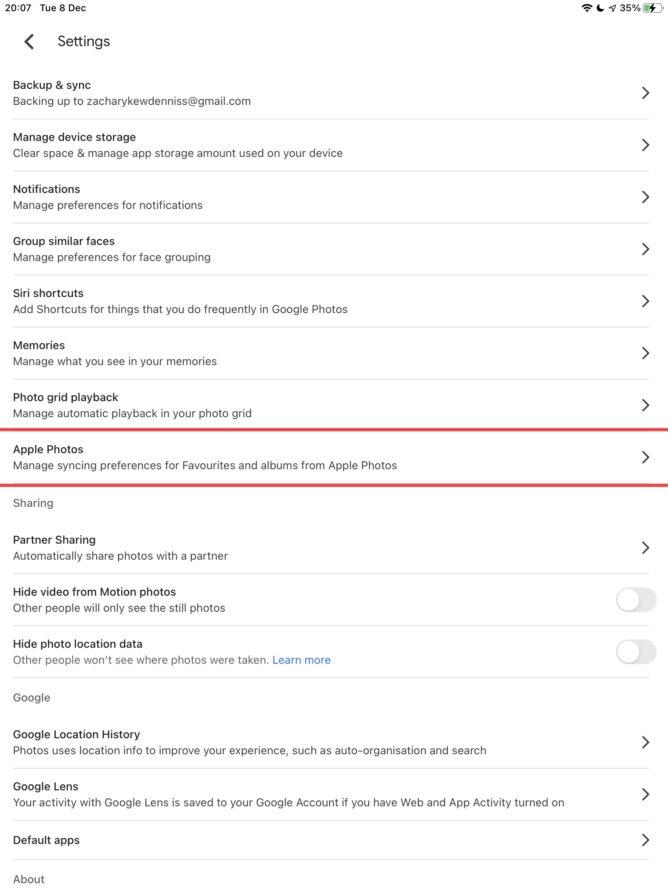 ส่วนวิธีการเปิดใช้ฟังก์ชันซิงก์ข้อมูลจะต้องเข้าไปใน Google Photos จากนั้นไปที่หน้าโปรไฟล์ของคุณ โดยที่ด้านขวาบนจะเห็นปุ่มตั้งค่า คลิกเข้าไปและเราจะพบเมนูใหม่ 'Apple Photos' ปรากฏขึ้นมา หลังจากนั้นคุณก็สามารถเปิดใช้ฟังก์ชันการซิงก์ข้อมูลได้ และรูปภาพทั้งหมดที่เก็บไว้จากแอปใดแอปหนึ่ง ก็จะไปอยู่บนอีกแอปพลิเคชันให้เองอัตโนมัติ รวมถึงยังสามารถซิงก์ภาพที่เป็นภาพโปรดตามที่ผู้ใช้ตั้งเอาไว้ได้ด้วย