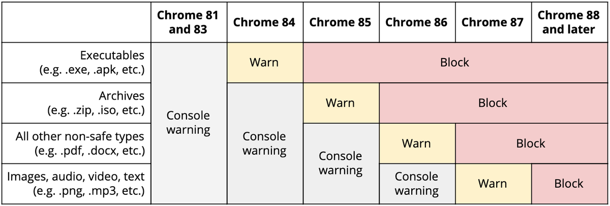 ก่อนหน้านี้ใน Chrome 86 ทาง Google ได้ปิดการทำงานของ Autofill ระหว่างการกรอกข้อมูลบนเว็บไซต์แบบ Mixed Form (เว็บไซต์ที่หน้าเว็บปัจจุบันเป็น HTTPS แต่เมื่อกดปุ่มส่งข้อมูลแล้วส่งไปยังเว็บ HTTP) แล้วเป็นที่เรียบร้อย และใน Chrome 88 ก็ได้เพิ่มอัปเดตความปลอดภัยของฟีเจอร์นี้มากขึ้นโดยจะชะลอการโหลดหน้าเว็บและขึ้นหน้าการแจ้งเตือนก่อนส่งข้อมูลอีกครั้งหนึ่งขึ้นมา รวมทั้งจะบล็อกไม่ให้ผู้ใช้ดาวน์โหลดข้อมูลเอกสาร, ภาพ, หรือวิดีโอต่างๆ จากเว็บไซต์ HTTP ด้วย โดยหากผู้ใช้กดดาวน์โหลดก็จะปรากฏข้อความขึ้นแจ้งเตือนว่า “This [file] can’t be downloaded securely”