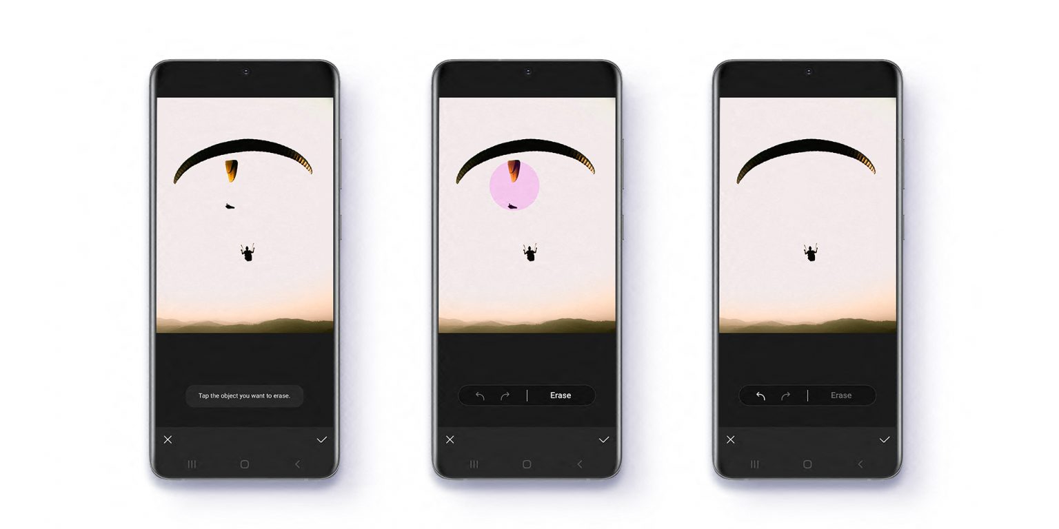 ฟีเจอร์การลบวัตถุต่าง ๆ บนรูปภาพได้อย่างแนบเนียนผ่านแอปพลิเคชัน Samsung Gallery โดยมันจะใช้การประมวลผลของ AI เป็นตัวช่วยให้การปรับแต่งภาพง่ายและสะดวกมากยิ่งขึ้นโดยไม่ต้องพึ่งพาแอปพลิเคชันอื่นเพิ่มเติมแต่อย่างใด