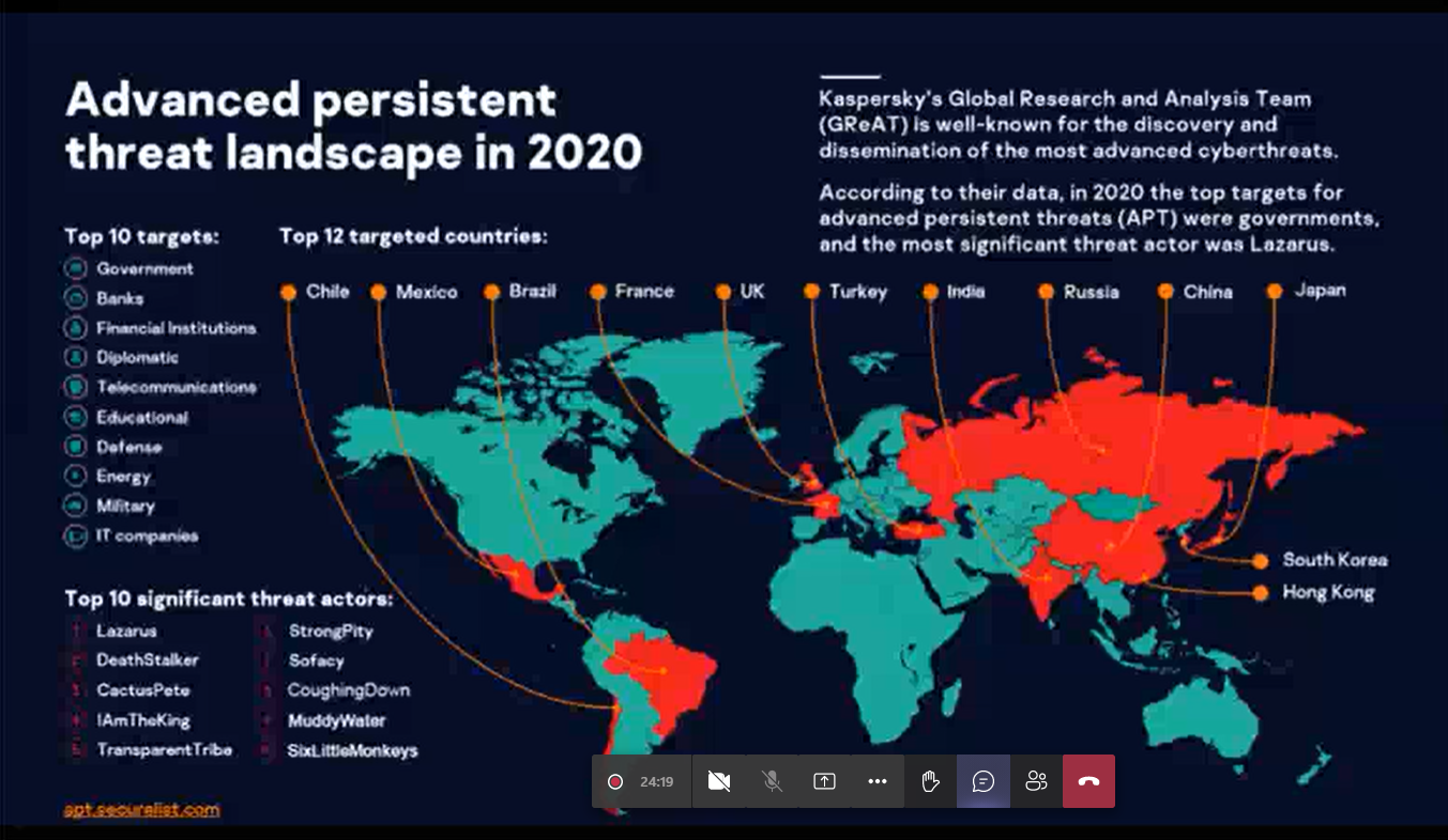 TalilKaspersky บริษัทผู้เชี่ยวชาญด้านความปลอดภัยบนอินเทอร์เน็ตระดับโลก เปิดงานแถลงข่าวในหัวข้อ “From Codes to Cold Cash: Financial Threats in Southeast Asia” อัปเดตภัยคุกคามการเงินอาเซียนล่าสุด และ สถานการณ์กลุ่มแฮ็กเกอร์ที่มุ่งโจมตีสถาบันการเงิน ซึ่งเคยเกิดขึ้นไปทั่วโลกเมื่อปี พ.ศ. 2558 (ค.ศ. 2015) และยังคงมุ่งเป้าโจมตีอย่างต่อเนื่องในภูมิภาคเอเชียตะวันออกเฉียงใต้ โดยใช้ประโยชน์จากสถานการณ์ โควิด-19