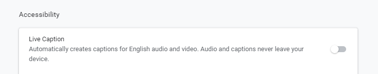 วิธีเปิดคือคุณต้องอัปเดตเวอร์ชัน Chrome เป็นเวอร์ชันล่าสุด และ เข้าไปที่การตั้งค่า (Setting) > การต่างค่าชั้นสูง (Advanced) > ตัวช่วยการเข้าถึง (Accessibility) , มองหาฟีเจอร์ Live Caption และเปิดการใช้งาน