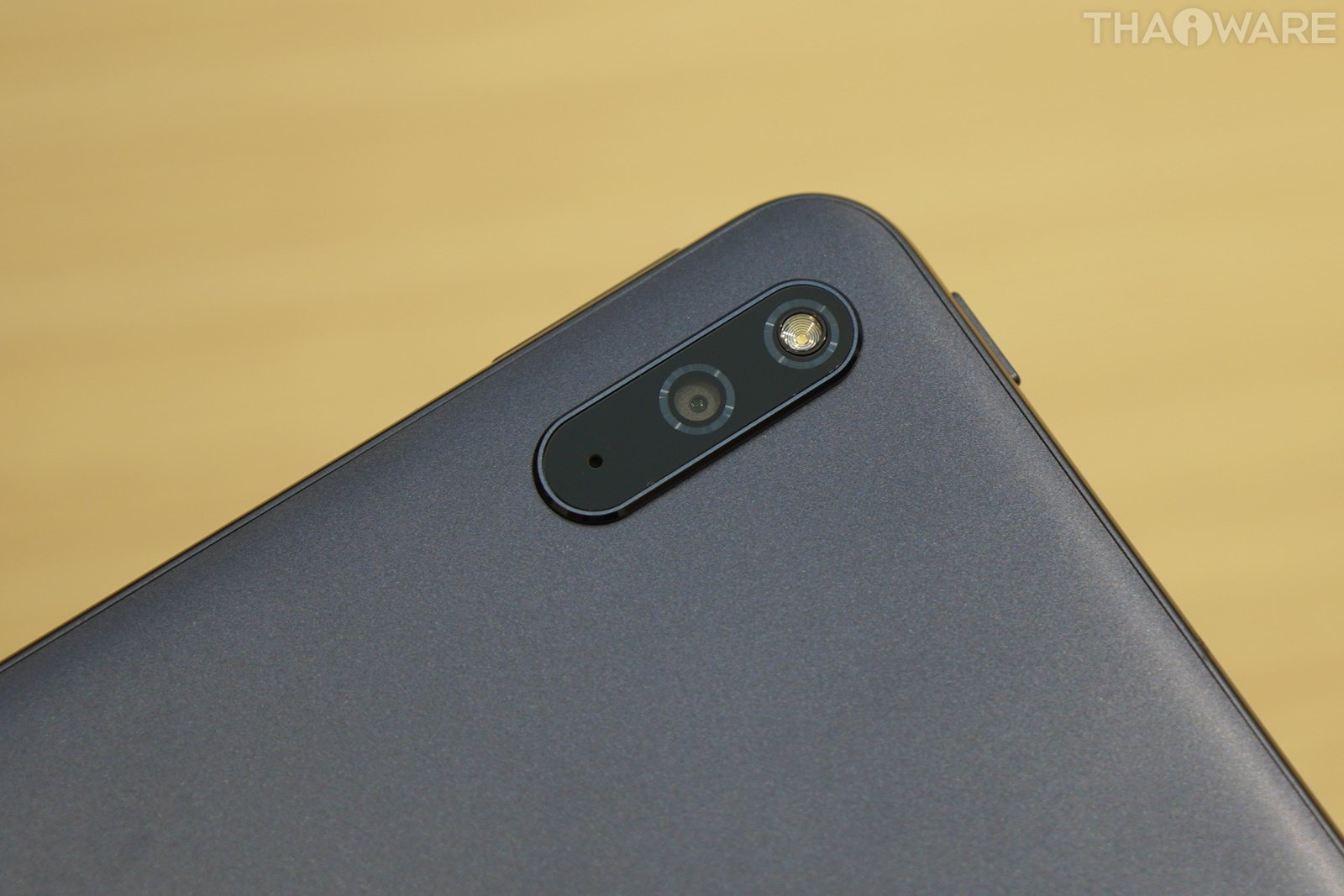 ด้านหลังของ HUAWEI MatePad ใช้เป็นวัสดุผิวด้านสีน้ำเงินเข้ม บริเวณมุมมีกล้องหลัง 8 ล้านพิกเซลพร้อมแฟลชจัดวางอยู่