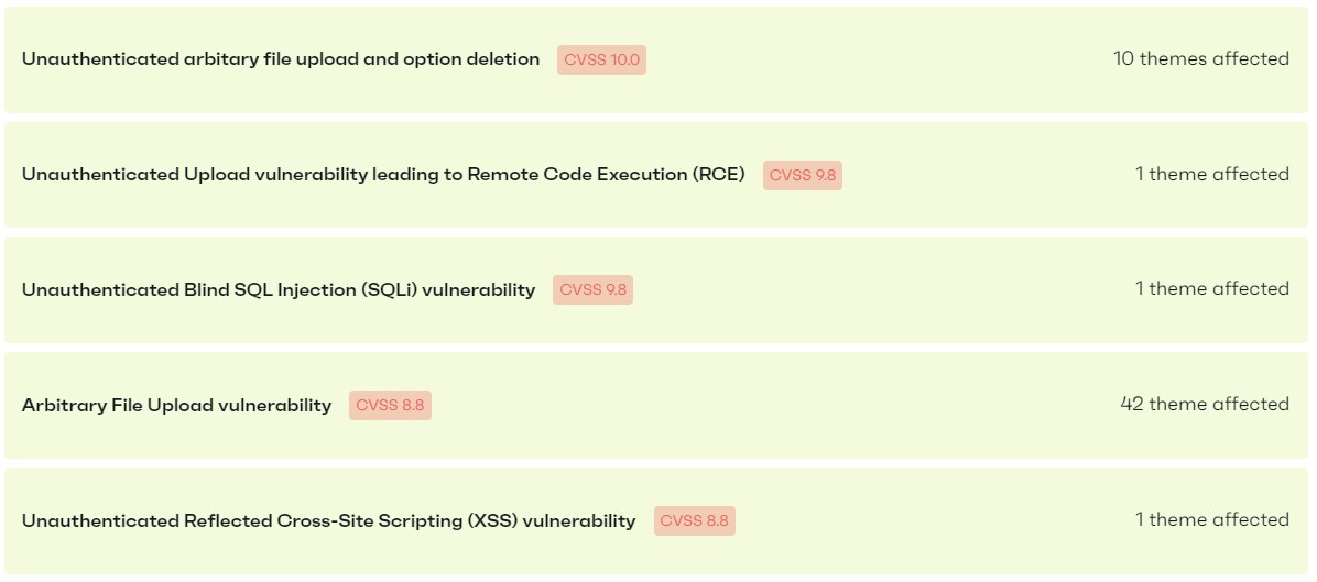 ส่วนทางด้านของช่องโหว่ที่เกี่ยวกับ “Theme” ของ WordPress ส่วนใหญ่ก็จะส่งผลกระทบให้ผู้ใช้ไม่สามารถ “อัปโหลดไฟล์” ขึ้นบนเว็บไซต์ได้อย่างราบรื่นและพบปัญหาเกี่ยวกับการอัปโหลดไฟล์ได้ค่อนข้างบ่อย