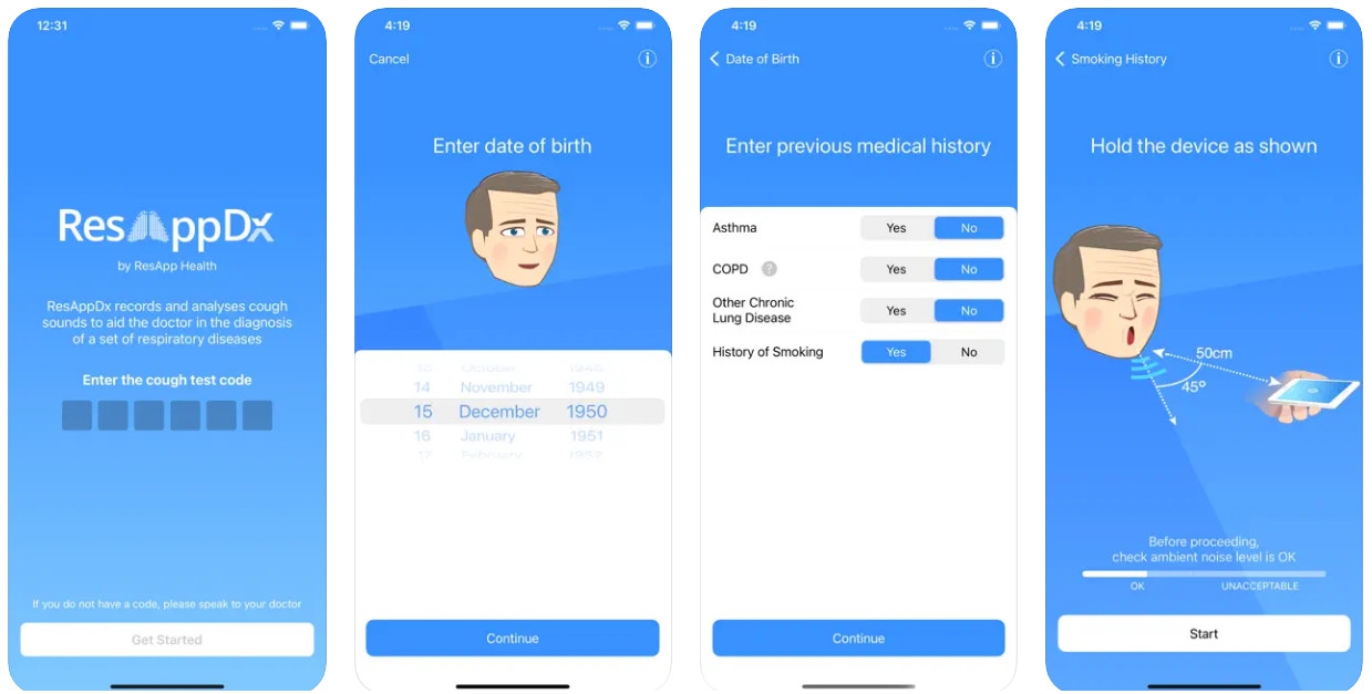 โดยบริษัท ResApp Health Limited เป็นผู้อยู่เบื้องหลังแอปพลิเคชัน ResAppDx ซึ่งเป็นแอปพลิเคชันที่สามารถตรวจหาโรคเกี่ยวกับทางเดินหายใจได้ด้วยตนอย่างง่าย ๆ โดยให้ผู้ใช้งานแอปฯ "ไอ" แล้วตัวแอปฯ จะฟังเสียง เพื่อวิเคราะห์ว่าเสียงไอของคุณนั้นเป็นอาการไอปกติ หรือว่ามีความผิดปกติจากโรคเกี่ยวกับทางเดินหายใจหรือเปล่า ?