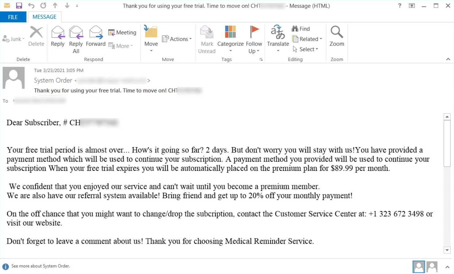 การล่อลวงของ Callback Phishing ที่ว่านี้ จะเริ่มต้นด้วยการส่งอีเมลหาเหยื่อ ว่าได้ไปสมัครบริการ (Subscribed) ซักอย่างที่ราคาแรง ๆ ทำให้เหยื่อตกใจว่าต้องจ่ายเงินก้อนที่ไม่สมควรต้องจ่าย จากนั้นจะมีเบอร์ติดต่อกลับทิ้งไว้ในอีเมล เพื่อให้ติดต่อกลับมายกเลิกการสมัคร ซึ่งถ้าเหยื่อเชื่อแล้วติดต่อกลับมา มิจฉาชีพก็จะล่อลวงเพื่อรีโมตเข้าไปติดตั้งมัลแวร์ (Malware) ไม่ว่าจะเป็น โทรจัน (Trojan) สปายแวร์ (Spyware) หรือแรนซัมแวร์ (Ransomware) ก็ตามแต่มิจฯ สะดวก