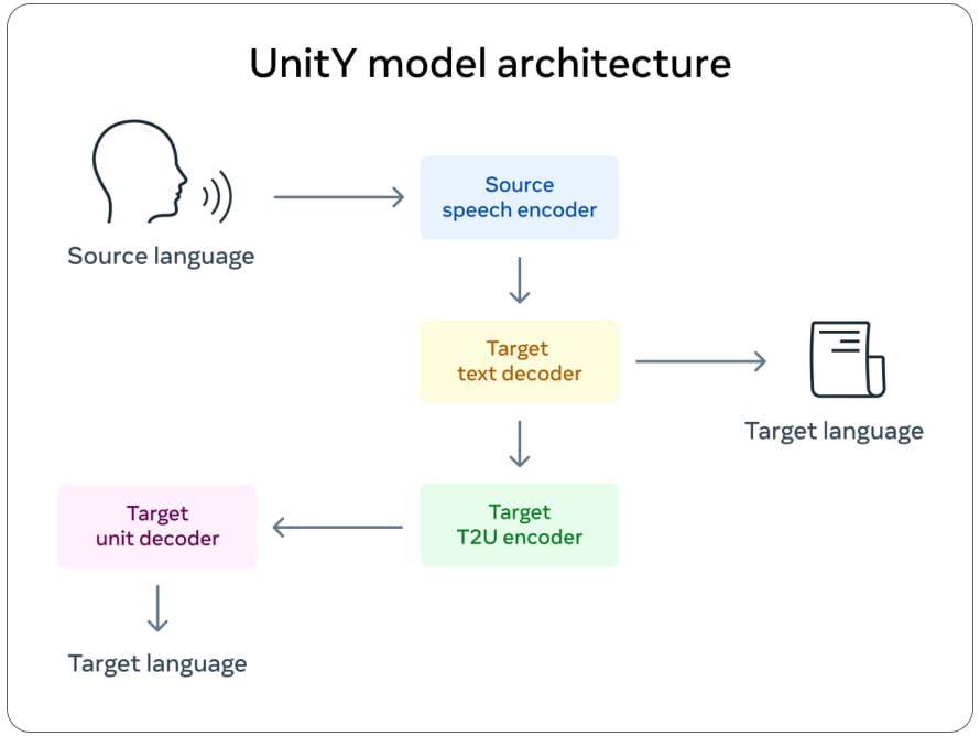 นอกจากนี้ ทาง Meta ยังเปิดตัว SpeechMatrix ชุดการแปลเสียงพูดจำนวนมากที่พัฒนาผ่าน speech-to-speech translations ที่เป็นนวัตกรรมใหม่ โดยเครื่องมือเหล่านี้ช่วยให้นักพัฒนาคนอื่น ๆ สร้างและพัฒนาระบบการแปลคำพูดของ AI แบบต่อยอดไปได้เรื่อย ๆ ซึ่งทาง Meta จะไม่ได้เข้ามาควบคุมในส่วนนี้ จึงทำให้เกิดการเรียนรู้ ความก้าวหน้า ความเป็นไปได้ในการสร้าง AI แปลเสียงพูดที่ไม่มีคำอธิบายใด ๆ จากมนุษย์ และการวิจัย AI ของ Meta ยังช่วยขจัดอุปสรรคด้านการสื่อการ เปิดกว้างทางภาษา และส่งเสริมความเข้าใจซึ่งกันและกันระหว่างมนุษย์อีกด้วย