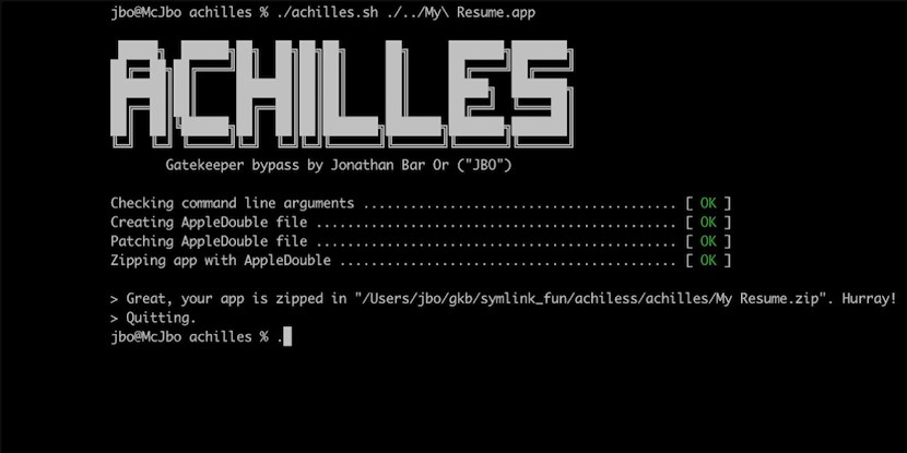 ช่องโหว่ตัวนี้ได้รับการขนานนามว่า "Achilles" ตั้งโดย Jonathan Bar Or เจ้าหน้าที่ของ Microsoft ภายหลังมีการแจ้งไปยัง Apple แล้ว และทาง Apple ก็ได้ออกแพทซ์เพื่ออัปเดตแก้ไข รหัส CVE-2022-42821 ทั้งบน macOS 13 (Ventura), macOS 12.6.2 (Monterey) และ macOS 1.7.2 (Big Sur) เมื่อสัปดาห์ที่แล้วในวันที่ 13 ธันวาคม