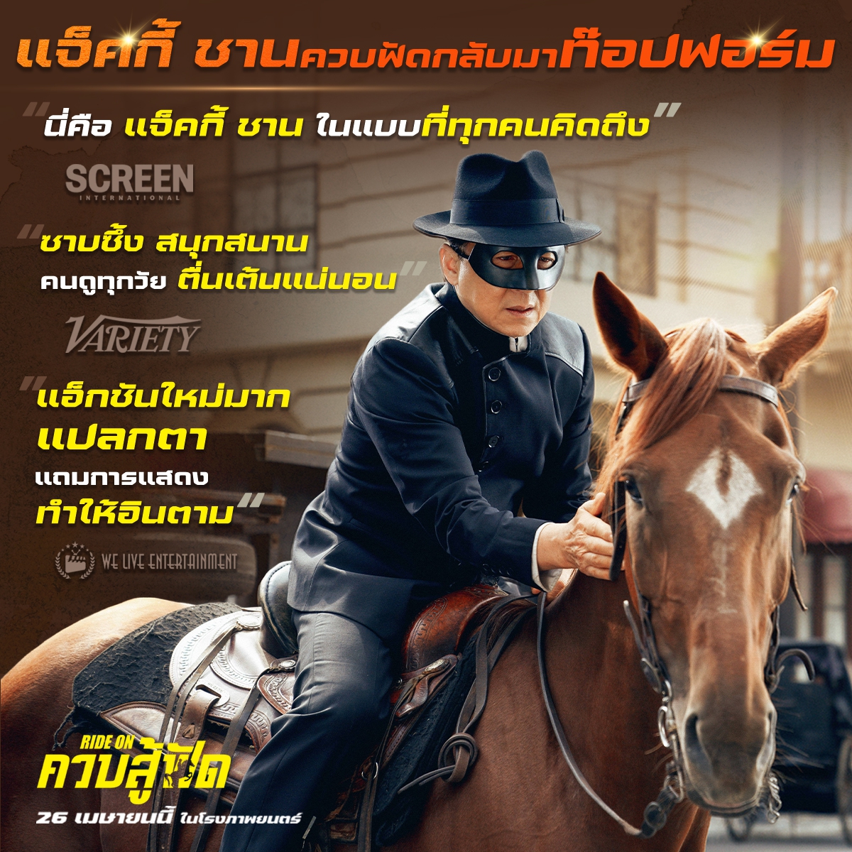 ยิ่งไปกว่านั้นผลงานภาพยนตร์เรื่องเยี่ยมอย่าง Ride On ควบสู้ฟัด ที่กำกับโดย แลรี่ หยาง ผู้กำกับมือทอง ยังได้รับการยกย่องจากนักวิจารณ์ และสื่อชั้นนำทั่วโลก ถึงการคืนฟอร์มซูเปอร์สตาร์นักบู๊อย่างยอดเยี่ยมของแจ็คกี้ ชาน ในสไตล์ เล่นจริง เจ็บจริง! รวมไปถึงเรื่องราวในภาพยนตร์ที่สนุกสนาน เต็มไปด้วย อีสเตอร์ เอ้ก (Easter Egg) ของภาพยนตร์เรื่องดัง ๆ มากมายในอดีตที่มาเป็นเซอร์ไพรส์ให้กับแฟนหนังของเขา