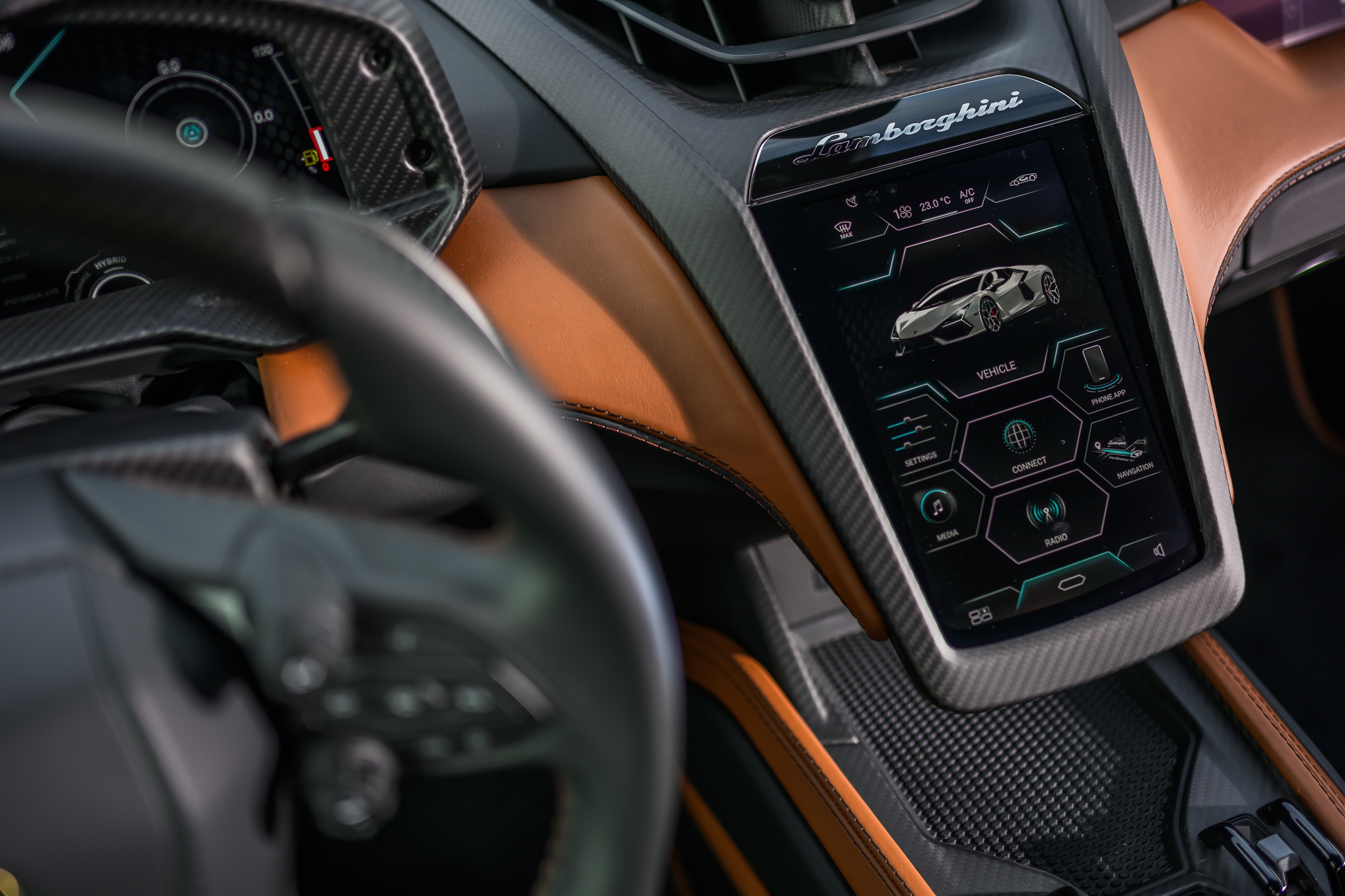 นอกจากนี้ ด้วยแอปพลิเคชัน Lamborghini Unica บนสมาร์ตโฟน ยังทำให้นักขับสามารถตรวจสอบสถานะต่างๆ ของรถได้ตลอดเวลา ทั้งระดับเชื้อเพลิง การชาร์จแบตเตอรี่ ระยะทางที่วิ่งได้ต่อการชาร์จไฟหนึ่งครั้ง ตำแหน่งการจอดที่แน่นอน หรือแม้กระทั่งการควบคุมรถยนต์ระยะไกล เช่น การล็อกและปลดล็อกประตู การเปิดเสียงแตรหรือเปิดแสงไฟ โดยบางฟังก์ชั่นยังสามารถสั่งการได้ผ่านทาง Apple Watch อีกด้วย