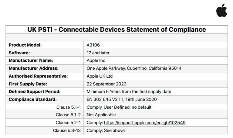 ซึ่งตามความเป็นจริงนั้นทาง Apple ได้มีการออกอัปเดตใหม่ ๆ เพื่อคุ้มครอง iPhone รุ่นอื่นในระยะเกิน 5 ปีหลังการขายครั้งแรกมานานนับปีแล้ว แต่นี่เป็นครั้งแรกที่ทาง Apple ให้สัญญากับทางผู้บริโภคอย่างเป็นทางการถึงข้อผูกพันนี้ เพื่อให้เป็นไปตามกฎหมาย Product Security and Telecommunications Infrastructure หรือ PSTI ที่ออกมาเพื่อการควบคุมความปลอดภัยของเครื่องมือด้านการสื่อสารต่าง ๆ