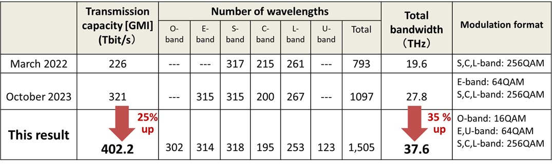 เทคนิคใหม่นี้สำเร็จได้โดยใช้ย่านความถี่ทั้งหมดที่มีอยู่ในสายใยแก้วนำแสงมาตรฐานซึ่งปกติไม่มีการนำมาใช้ ร่วมกับเทคโนโลยีการขยายสัญญาณต่าง ๆ มาใช้ NICT ระบุว่า วิธีการใหม่นี้อาจเป็นหัวใจสำคัญสำหรับเครือข่ายโทรคมนาคมในอนาคต