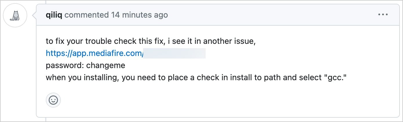 ภาพจาก : https://www.bleepingcomputer.com/news/security/github-comments-abused-to-push-password-stealing-malware-masked-as-fixes/