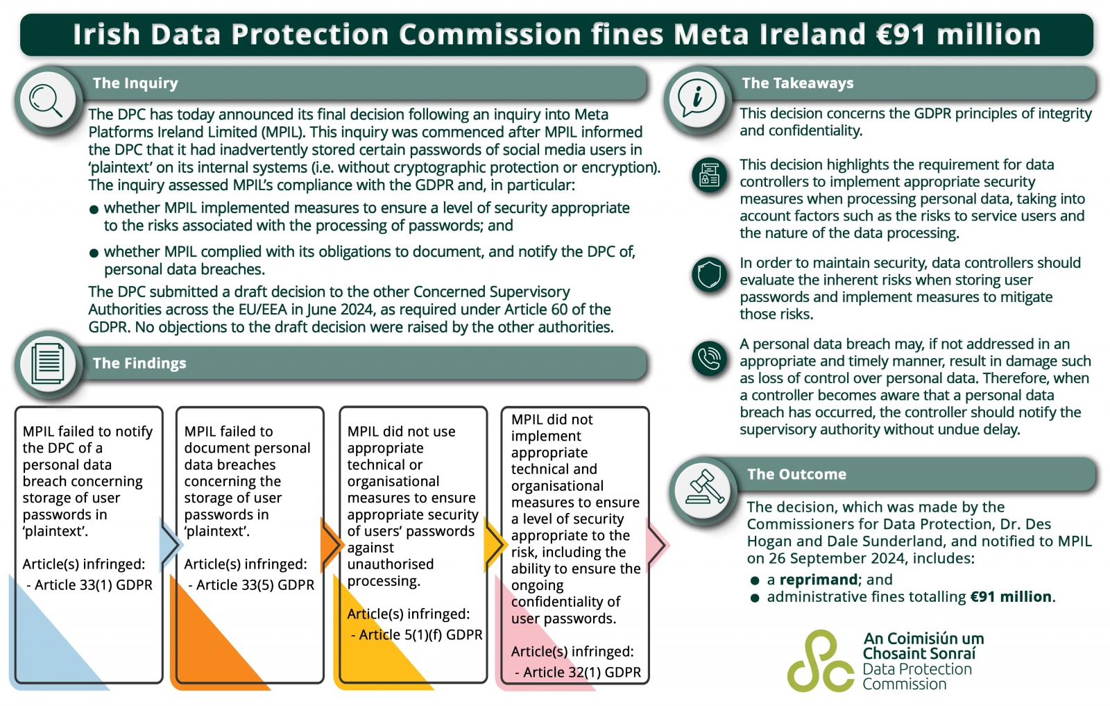 จากรายงานข่าวโดยเว็บไซต์ Cyber Security News ได้มีการรายงานถึงการที่บริษัท META ซึ่งเป็นผู้นำในวงการโซเชียลมีเดีย จากการที่เป็นผู้พัฒนาโซเชียลมีเดียชื่อดังอย่าง Facebook และยังเป็นเจ้าของ Instagram และ Whatsapp อีกด้วย ได้ถูกคณะกรรมาธิการการปกป้องข้อมูลแห่งประเทศไอร์แลนด์ หรือ Irish Data Protection Commission (DPC) สั่งปรับเงินเป็นจำนวนถึง 101 ล้านดอลลาร์สหรัฐ (ประมาณ 3,326 ล้านบาท) จากการละเมิดความปลอดภัยทางข้อมูลของผู้ใช้บริการ ด้วยการเก็บข้อมูลรหัสผ่านเป็นข้อความธรรมดาที่ไม่มีการเข้ารหัส หรือ Plain Text และการละเมิดข้อปฏิบัติด้านความปลอดภัยที่ไม่มีการแจ้งกับทาง DPC ถึงข้อผิดพลาดดังกล่าว ไม่เพียงเท่านั้น ข้อผิดพลาดนี้ยังเป็นการละเมิดกฎหมายว่าด้วยการปกป้องข้อมูลส่วนบุคคลแห่งสหภาพยุโรป หรือ General Data Protection Regulations (GDPR) อีกด้วย
