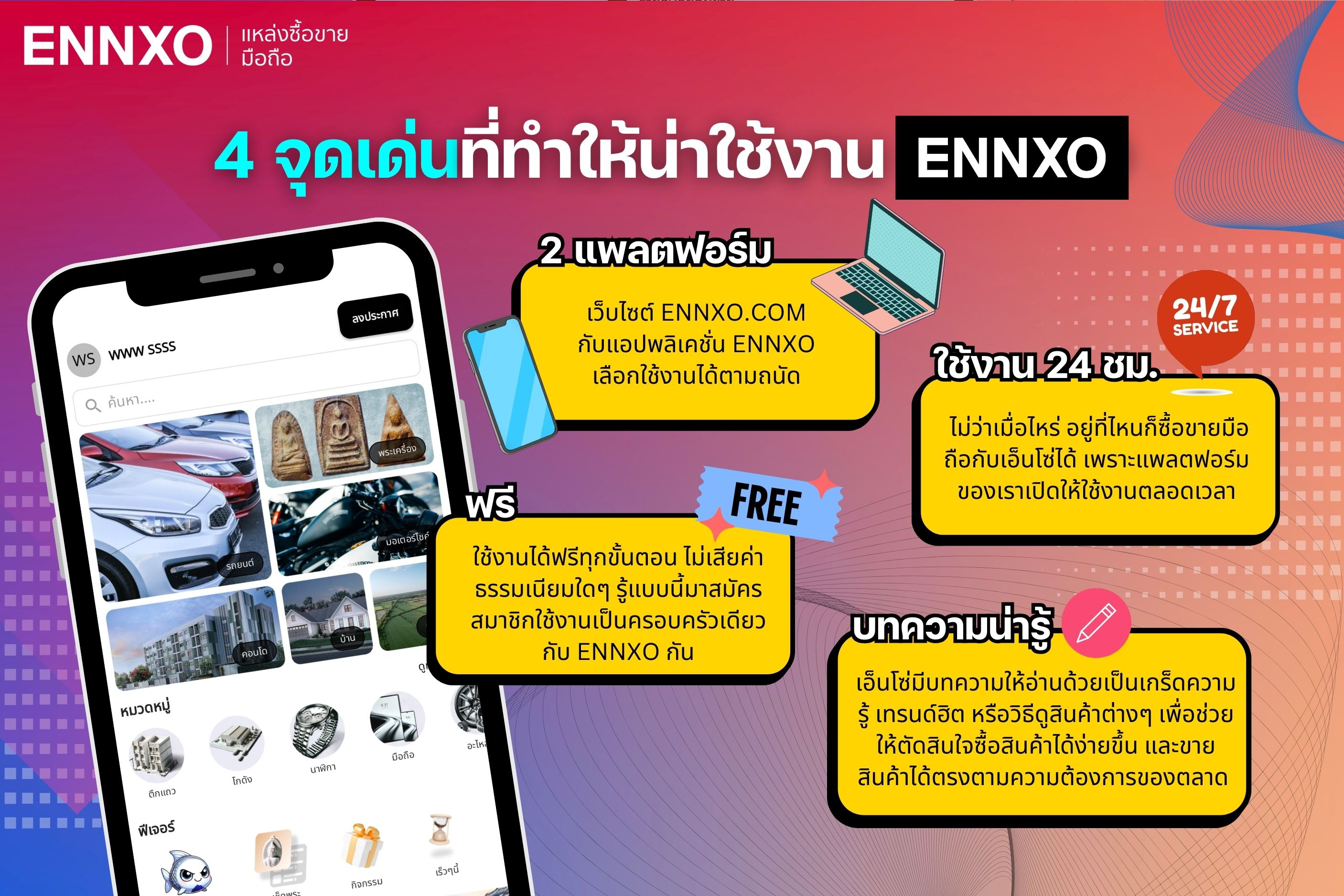 มาพร้อมฟังก์ชันกับฟีเจอร์เจ๋งๆ ที่ครอบคลุมทุกการใช้งาน อย่าง ตัวกรอง ระบบดันประกาศ ระบบแชทโดยตรง และหมวดหมู่กว่า 30 หมวด เช่น มือถือและแท็บเล็ต พระเครื่อง มอเตอร์ไซค์ คอนโด และสัตว์เลี้ยง เป็นต้น ซึ่งจะช่วยให้การซื้อขายมือถือของคุณสะดวกสบาย และเจอสมาร์ทโฟนตรงตามที่ค้นหา ที่สำคัญแพลตฟอร์มเอ็นโซ่ใช้งานฟรีทุกขั้นตอน และมีให้เลือกใช้ทั้งเว็บไซต์ ENNXO.COM กับแอปพลิเคชัน ENNXO ใครถนัดใช้งานแบบไหนเลือกใช้อันนั้นได้เลย บอกเลยว่าใช้บริการซื้อ-ขายสินค้ากับเอ็นโซ่มีแต่คุ้มกับคุ้ม อย่ารอช้า มาเป็นส่วนหนึ่งของครอบครัว ENNXO กัน