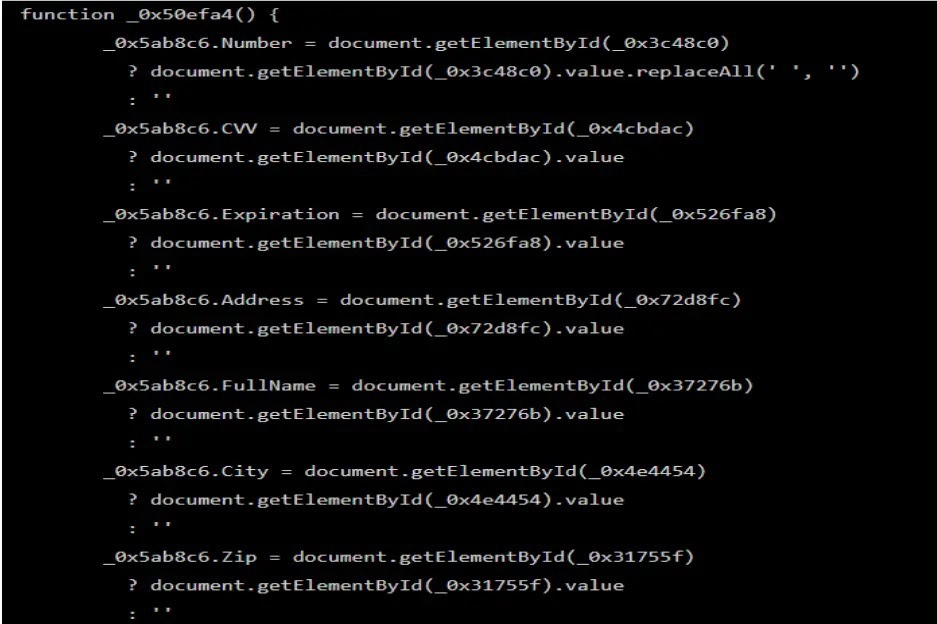 ไม่เพียงเท่านั้น ทางทีมวิจัยยังได้เปิดเผยถึงความร้ายกาจของมัลแวร์เก็บข้อมูลดังกล่าวอีกว่า “ถ้าบนหน้าเพจเป้าหมายนั้นไม่มีแบบฟอร์มให้กรอก ตัวสคริปท์จะทำการสร้างฟอร์มปลอมขึ้นมาเพื่อเก็บข้อมูลบัตรเครดิตอย่างละเอียด แต่ถ้ามีแบบฟอร์มอย่างเป็นทางการ ตัวสคริปท์ก็จะทำการอ่านและดูดข้อมูลจากแบบฟอร์มนั้นเพื่อส่งกลับไปให้แฮกเกอร์” นอกจากนั้นยังมีการเปิดเผยข้อมูลทางเทคนิคอีกว่า ข้อมูลที่ตัวสคริปท์เก็บได้จะถูกเข้ารหัสด้วยเทคโนโลยี AES-CBC ในระดับ Base64 ซึ่งอาจทำให้เจ้าของเว็บไซต์ที่ตกเป็นเหยื่อไม่ทราบว่าข้อมูลที่ถูกขโมยนั้นคืออะไร ทั้งยังทำให้การวิเคราะห์ข้อมูลโดยผู้เชี่ยวชาญนั้นทำได้ยากขึ้นไปอีกด้วย โดยข้อมูลที่ถูกเข้ารหัสเหล่านี้จะถูกส่งต่อไปยังเซิร์ฟเวอร์ควบคุม (Command and Control หรือ C2) โดยที่ทางทีมวิจัยได้เปิดเผยโดยเบื้องต้นนั้น เซิร์ฟเวอร์ C2 จะถูกตั้งชื่อว่า valhafather[.]xyz และ fqbe23[.]xyz